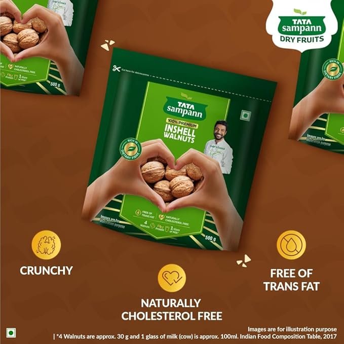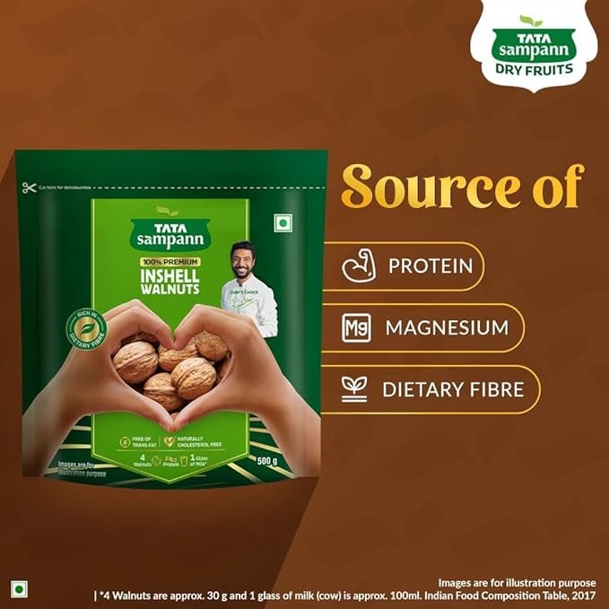 • NATURALLY CHOLESTEROL FREE: Naturally cholesterol-free, Tata Sampann Inshell Walnuts contribute to a balanced diet